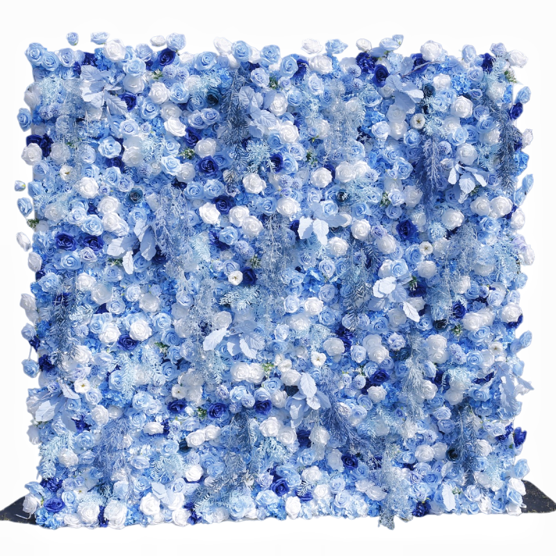 Light Blue Rose Artificial Flower Wall - Custom Size Faux Floral Backdrop for Wedding & Event Decor