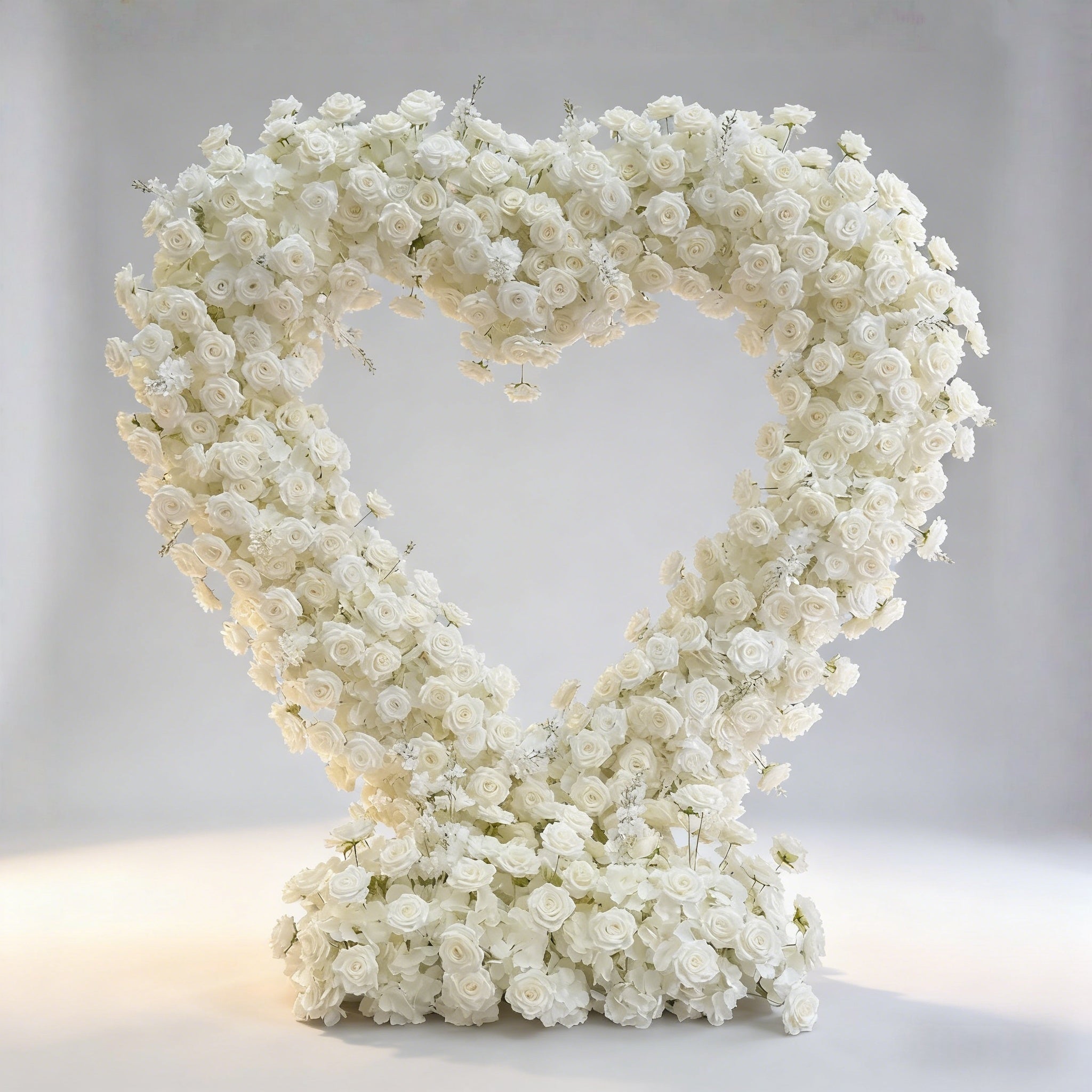2x2m White Rose Floral Artificial Flower Heart Shaped Arch for Wedding Decoration