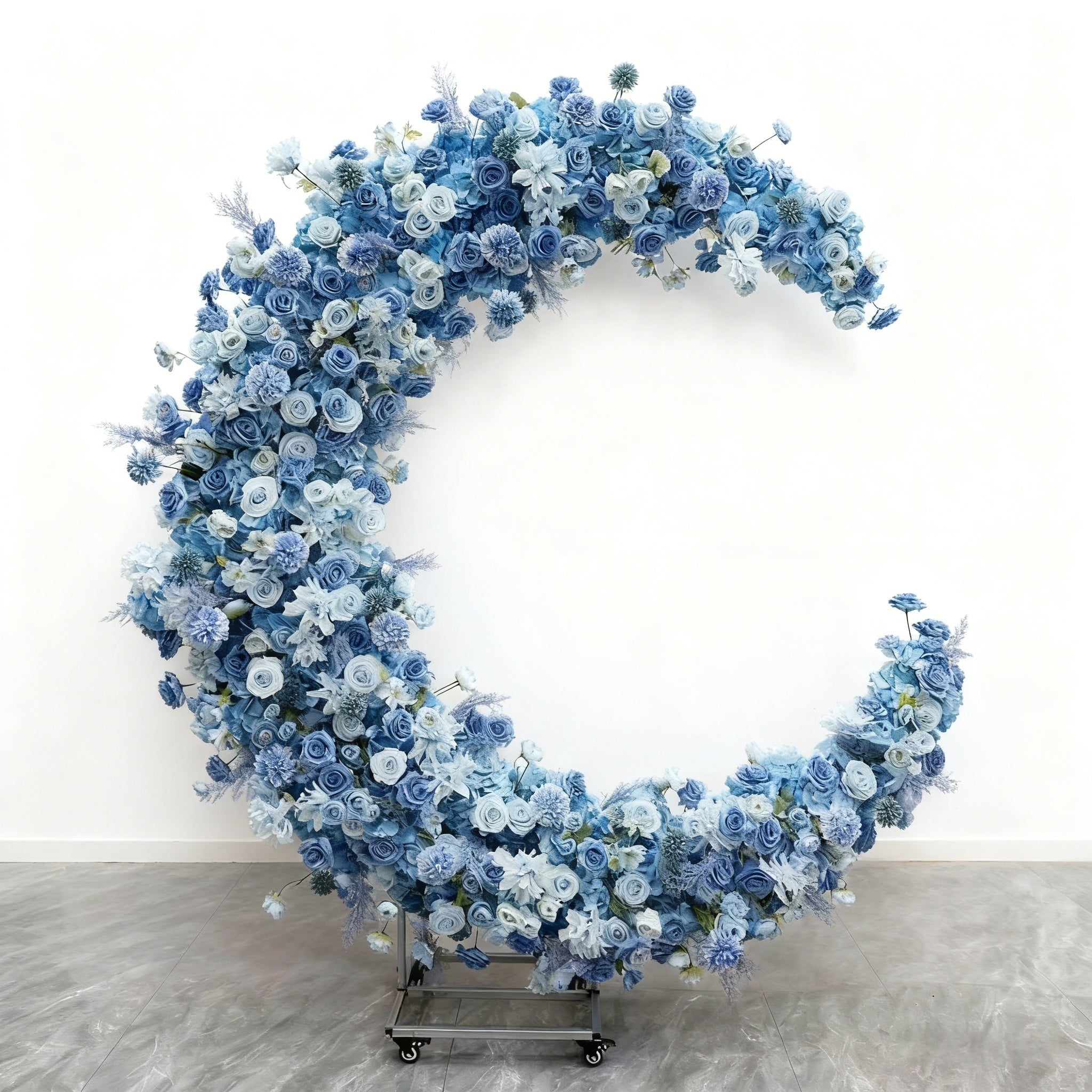 Stunning Blue Crescent Moon Flower Arch Make a dramatic statement with this breathtaking blue crescent moon floral installation. Featuring an exquisite blend of dusty blue, slate...Regular price $288.00Sale price $288.00 Regular priceUnit price per -