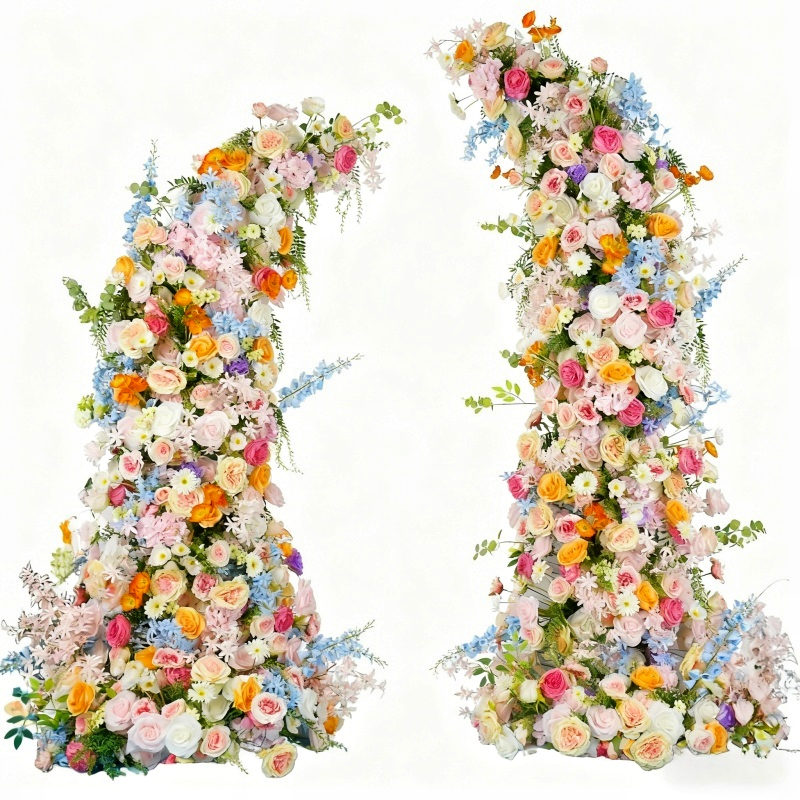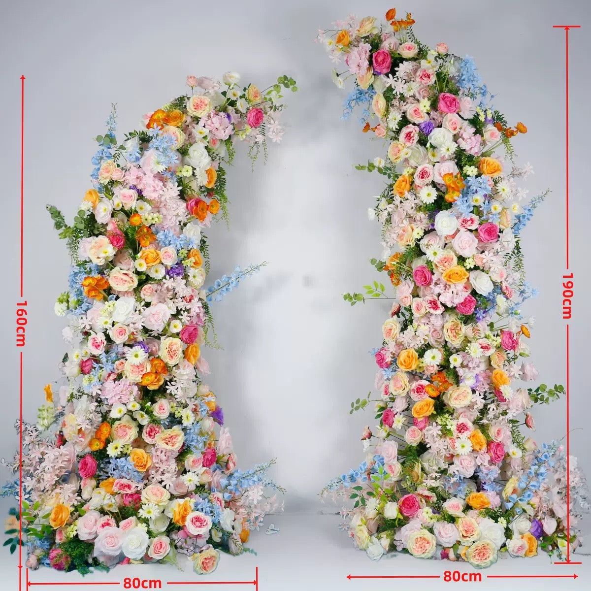 Wedding Decor Colorful Forest Style Artificial Flower Horn Arch Floral Columns