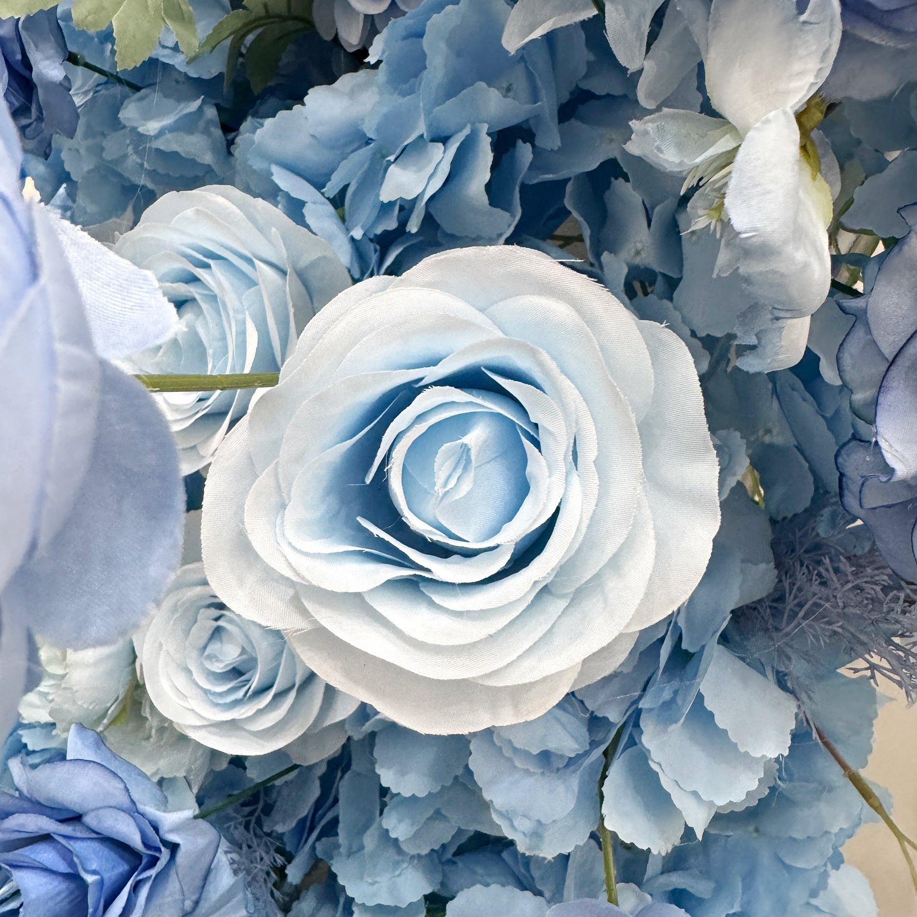 - Premium quality artificial roses in sophisticated blue gradient tones
