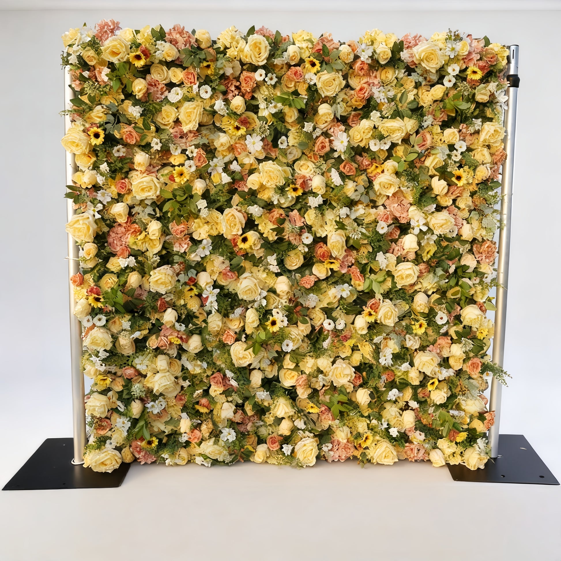 Transform any space into a stunning floral paradise with our luxurious Yellow Rose Flower Wall Panel. This exquisite decorative piece features a lush arrangement of lifelike yellow roses, peach roses, white daisies, and cheerful sunflowers, creating a warm and romantic atmosphere perfect for weddings, events, photo shoots, and premium interior spaces.